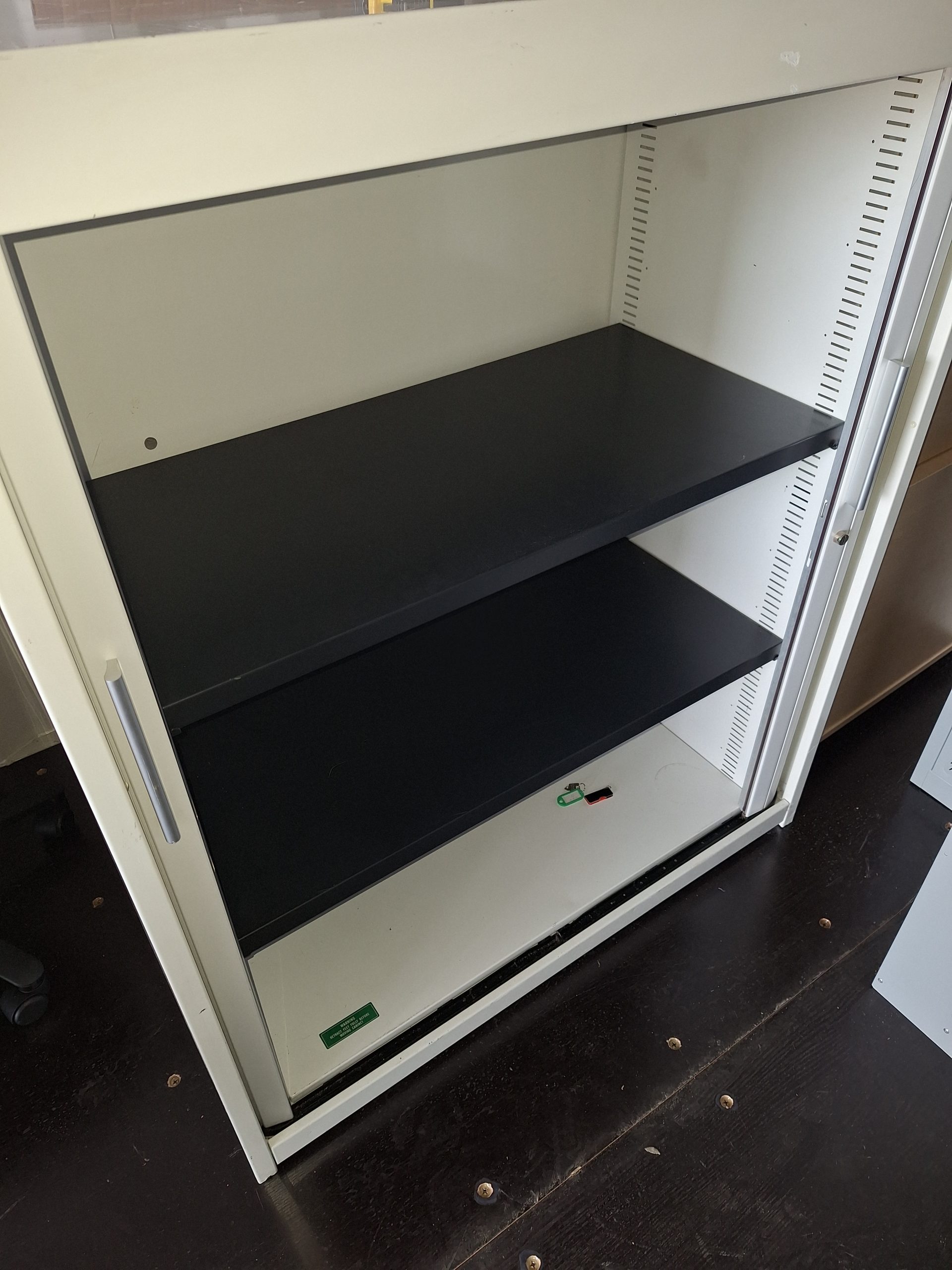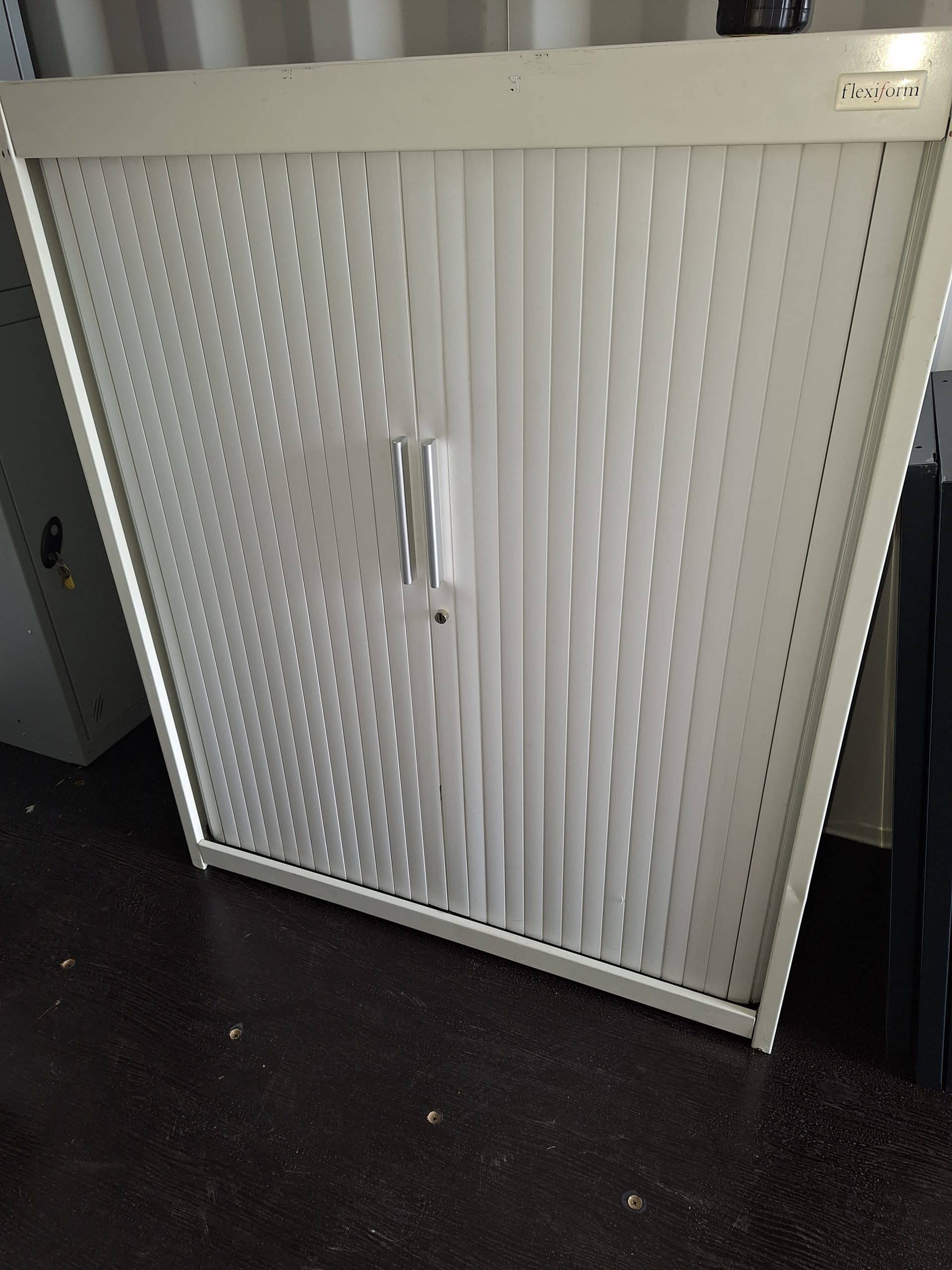 - 1200mm high x 1000mm wide x 500mm deep tambour cupboards supplied with two adjustable shelf